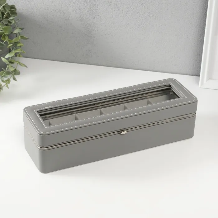 Шкатулка для часов 6 отделений «Серая», искусственная кожа, 9.5×30.5×8 см