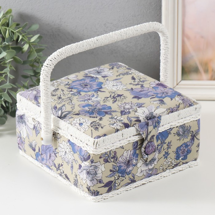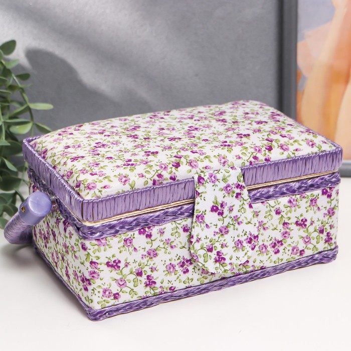 Шкатулка для рукоделия и шитья «Сиреневая цветочная поляна», хранение ниток, иголок, мелочи, 20×20×11 см