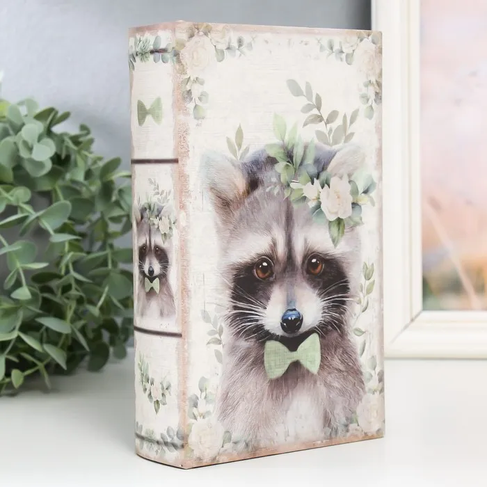 Шкатулка книга-сейф «Енотик в веночке», дерево, искусственная кожа, 21×13×5 см