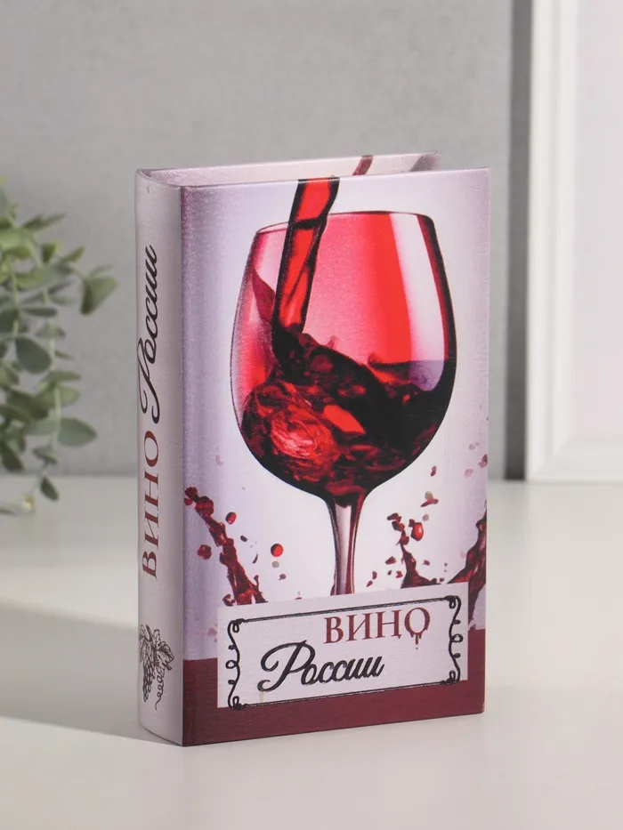 Шкатулка книга-сейф «Вино России», дерево, искусственная кожа, тиснение, 21×13×5 см