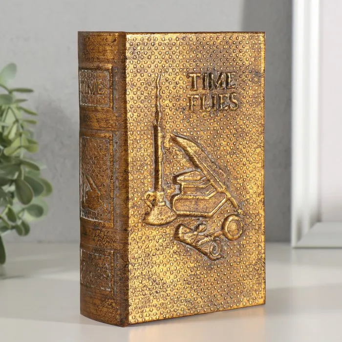 Шкатулка-книга «Время летит незаметно», дерево, искусственная кожа, тиснение, 16.5×11.2×5 см