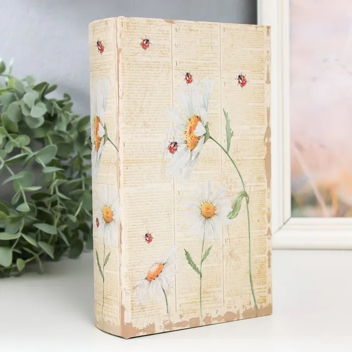 Шкатулка книга-сейф «Ромашки и божьи коровки», дерево, искусственная кожа, 21×13×5 см