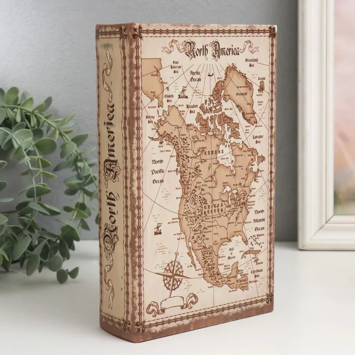 Шкатулка книга-сейф «Старинная карта», дерево, искусственная кожа, 21×13×5 см