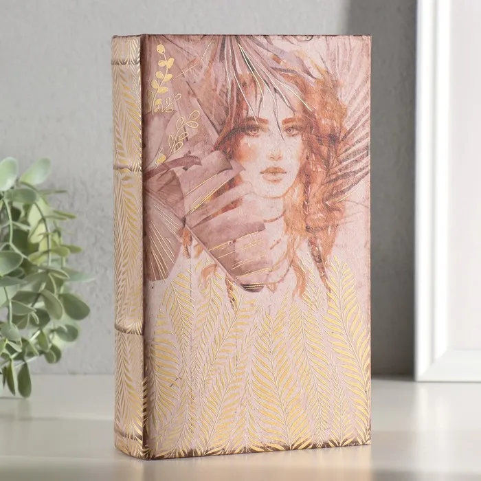 Шкатулка книга-сейф «Девушка в листьях», дерево, искусственная кожа, золото тиснение, 21×13×5 см