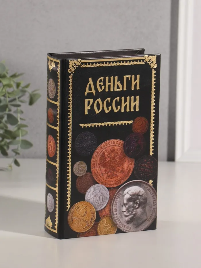 Шкатулка книга-сейф «Деньги России», дерево, искусственная кожа, тиснение, 21×13×5 см
