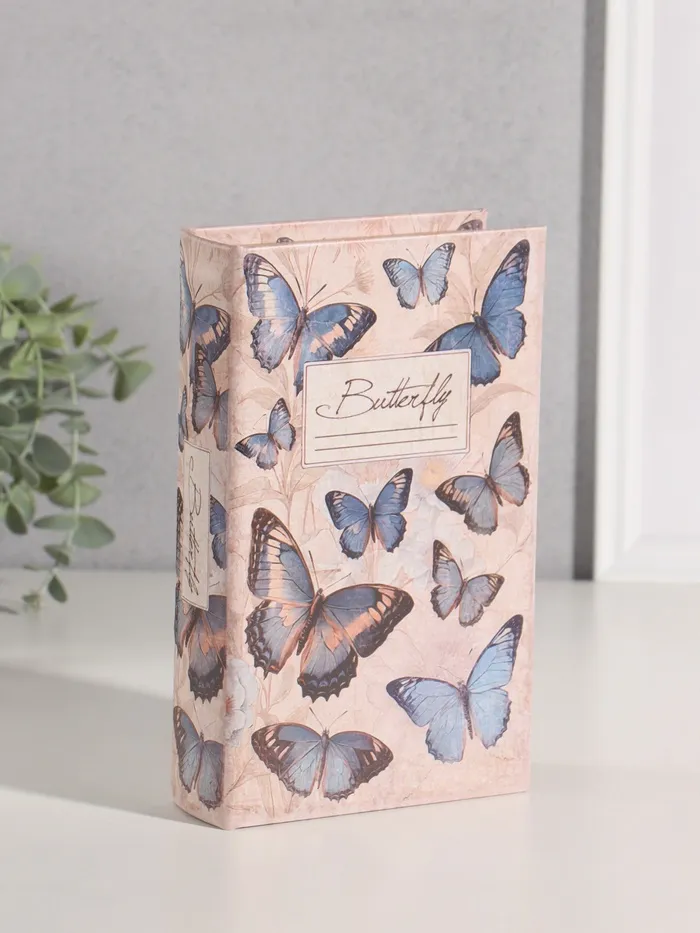 Шкатулка книга-сейф «Синие бабочки» дерево, искусственная кожа, 21×13×5 см
