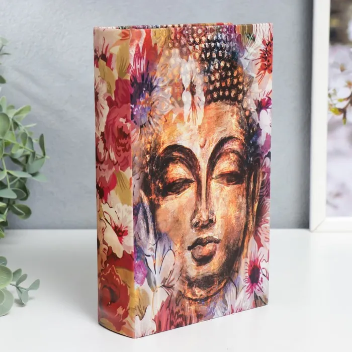 Шкатулка книга-сейф «Голова Будды в цветах», дерево, искусственная кожа, 21×13×5 см