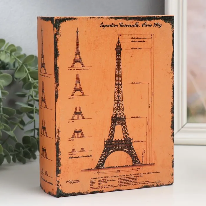 Шкатулка-книга «Чертёж Эйфелевой башни», дерево, искусственная кожа, 6×15×20 см