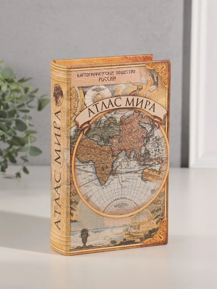 Шкатулка книга-сейф «Атлас мира», искусственная кожа, 21×13×5 см