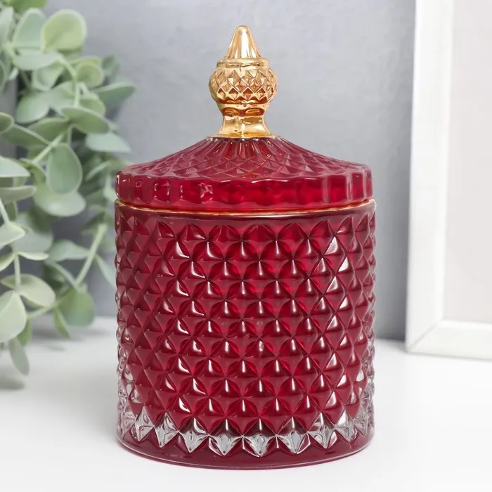 Шкатулка для украшений «Ромбы и купол», стекло, красный с золотом, 14×8.2×8.2 см