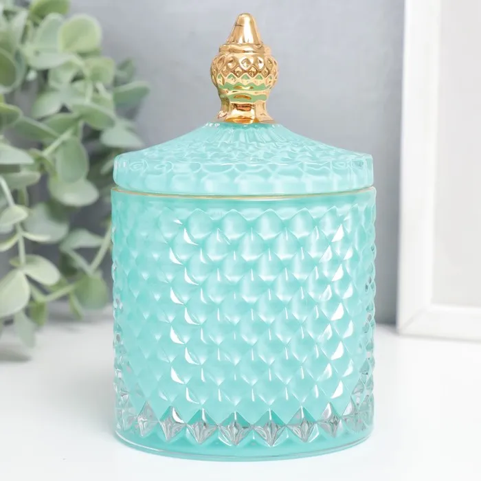 Шкатулка для украшений «Ромбы и купол», стекло, голубой с золотом, 14×8.2×8.2 см