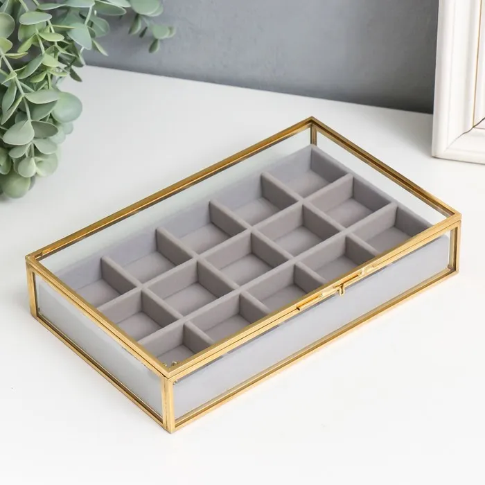Шкатулка для украшений с делениями «Модница», стекло с металлическим каркасом,22×13.5×4.5 см