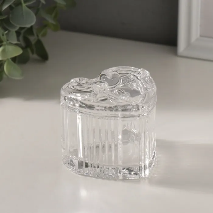 Шкатулка для украшений «Подарок сердце», стекло, прозрачная, 7.4×7.4×7.1 см