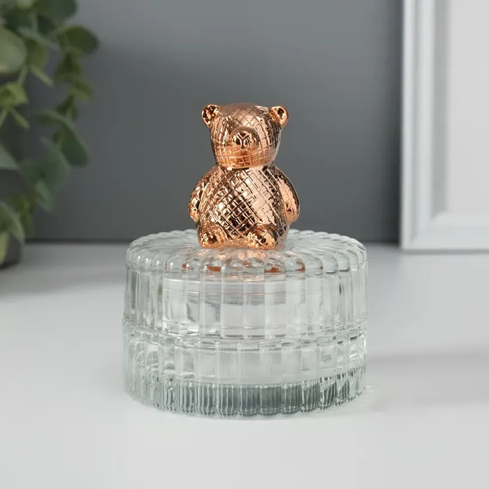 Шкатулка для украшений «Медный медвежонок», стекло, керамика, 7.8×7.8×9.5 см