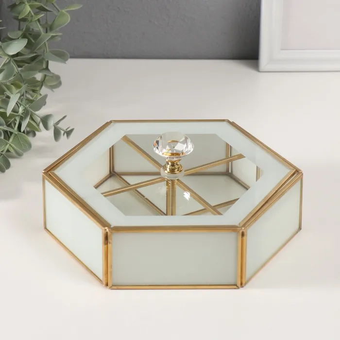 Шкатулка для украшений «Шестиугольник», стекло с металлическим каркасом, прозрачный белый, 17.5×20×8 см