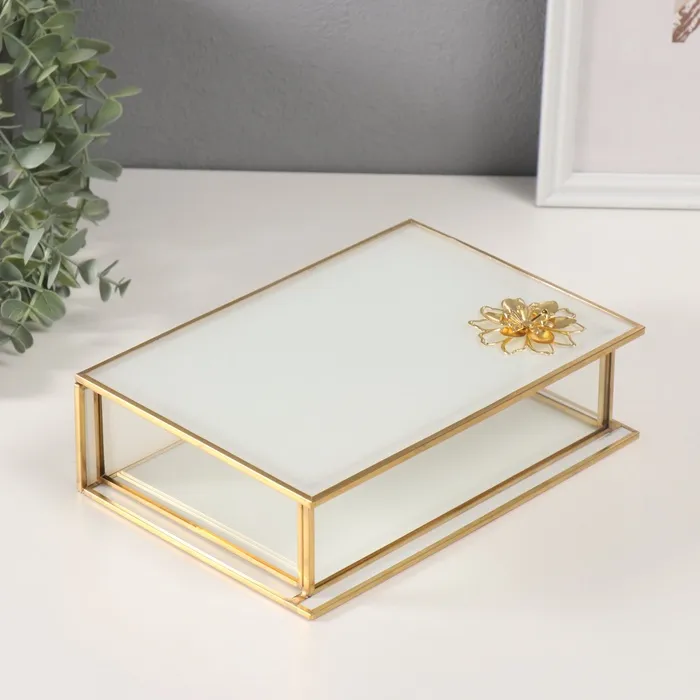 Шкатулка для украшений «Лотос», стекло с металлическим каркасом, прозрачный белый, 16×24×7 см