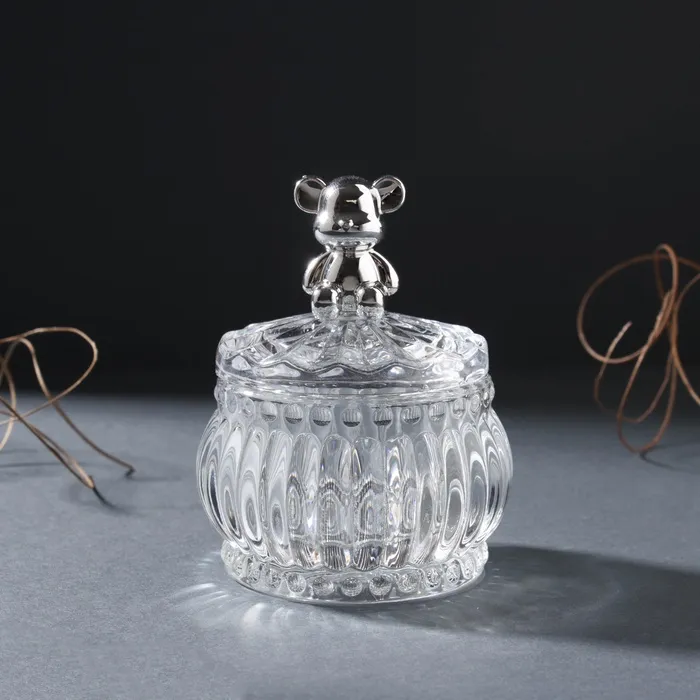 Шкатулка для украшений «Мишка», стекло, серебро, 8×8×10 см