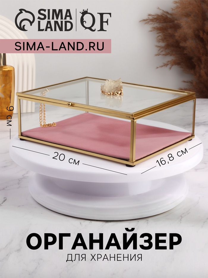 Шкатулка для украшений «Кристалл», с крышкой, стеклянный, 1 секция, 20×16.8×9 см, цвет медный, розовый