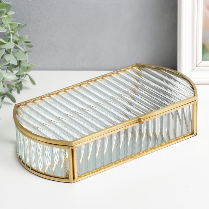 Шкатулка для украшений «Волны», стекло с металлическим каркасом под золото, 5.5×13.5×24.5 см
