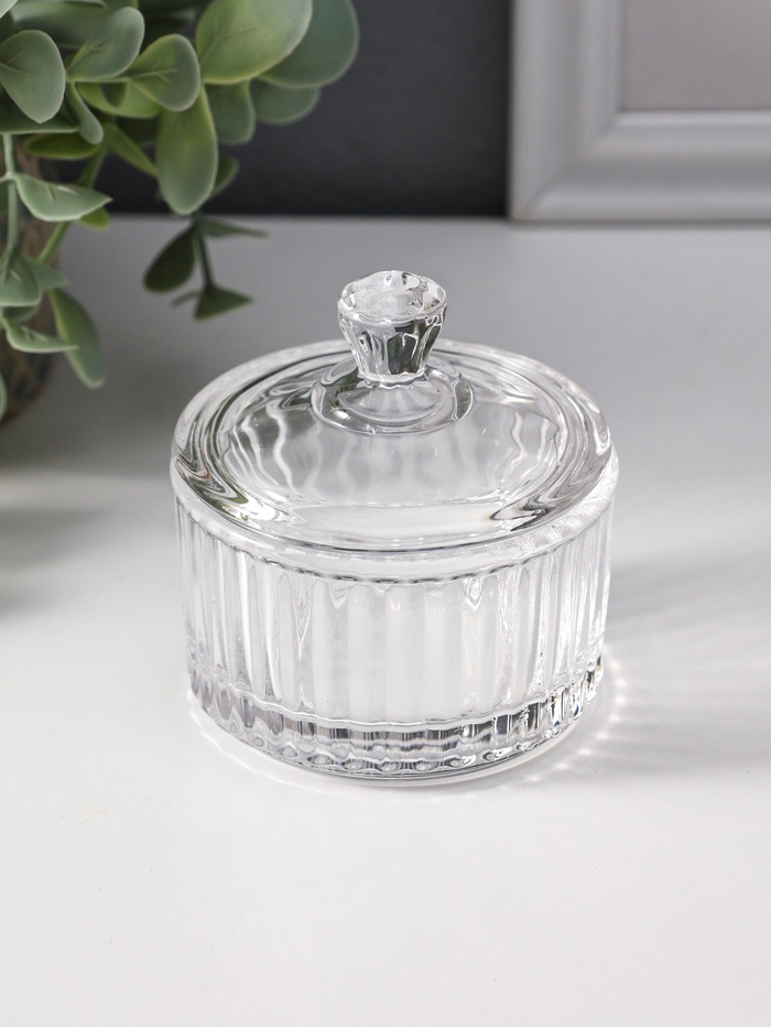 Шкатулка для украшений с крышкой «Полосы и бриллиант», стекло, прозрачная, 6.5×6.5×7 см