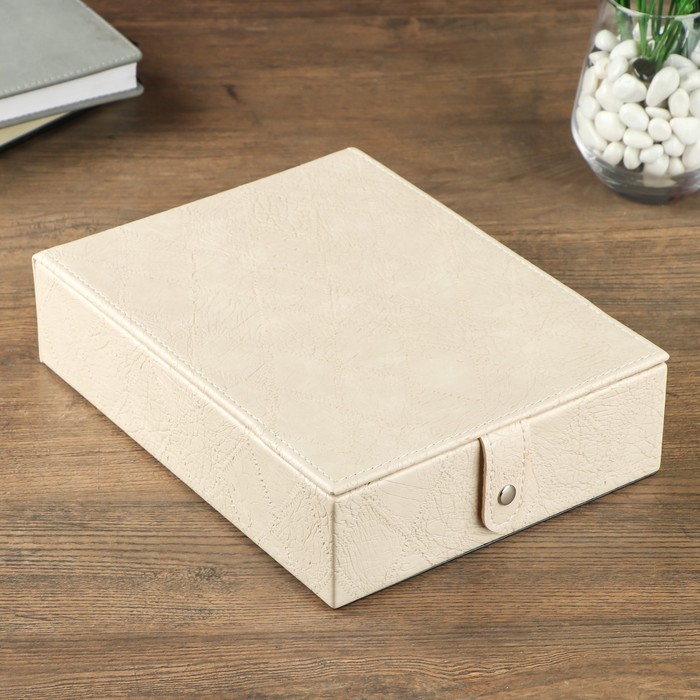 Шкатулка для украшений «Ромбики - кракелюр», кожзам, бежевая, 6×18×24 см