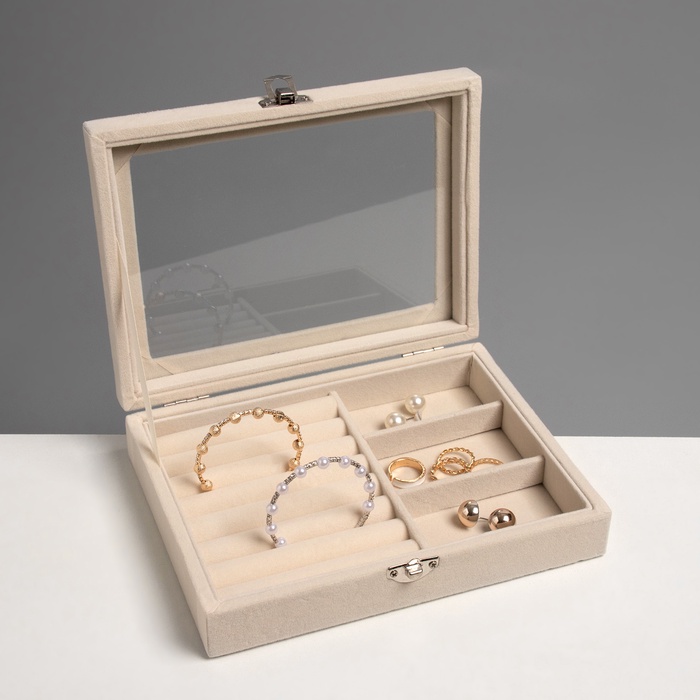Шкатулка для украшений «Облако», 7 полос, 3 ячейки, 20×15×4.5, бежевая