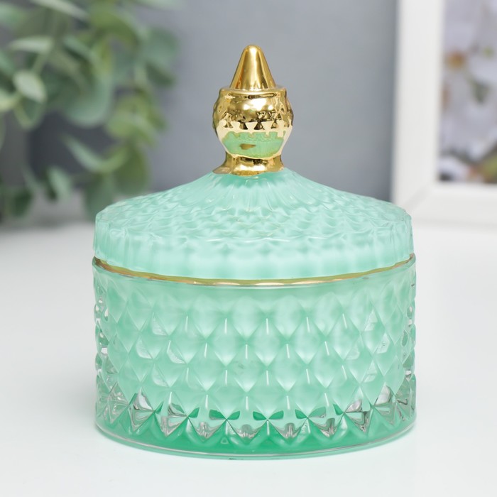 Шкатулка для украшений «Ромбы и купол», стекло, мятный с золотом, 9.5×8.5×8.5 см