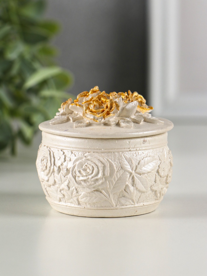 Шкатулка для украшений «Розы», с крышкой, гипс, 6×6 см, перламутр