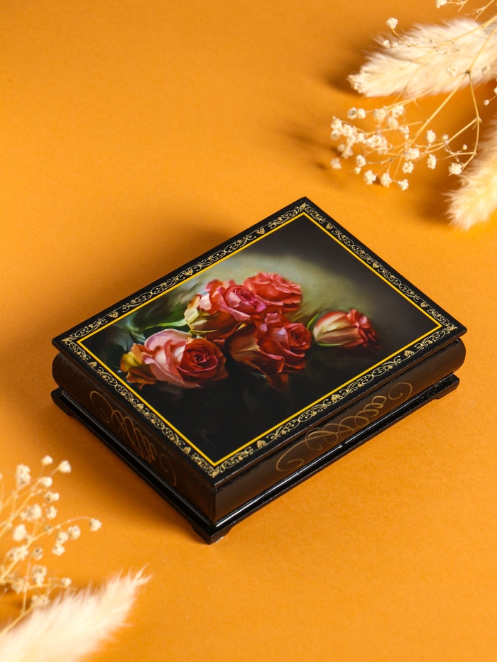 Шкатулка для украшений «Розы», 10×14 см, лаковая миниатюра