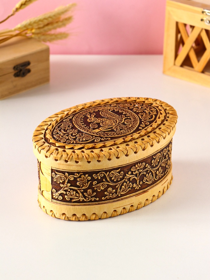 Шкатулка для украшений «Маленькая белочка», овальная, 14×9×6 см, береста