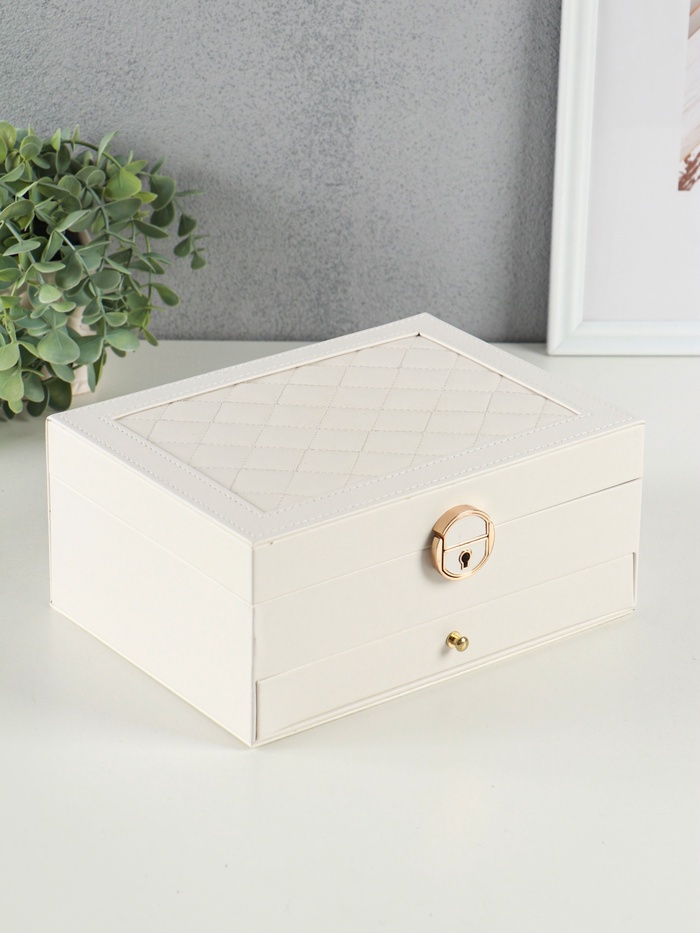 Шкатулка для украшений «Стёганная», 2 яруса, белая, 17.5×23.5×10.5 см