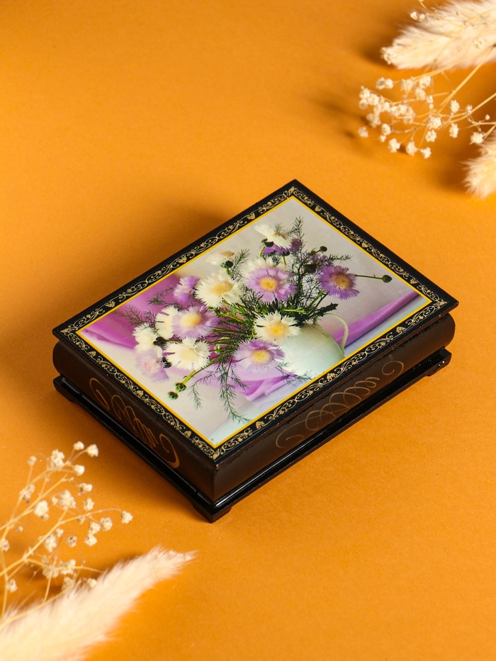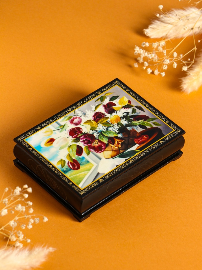 Шкатулка для украшений «Цветы в кувшине», 10×14 см, лаковая миниатюра
