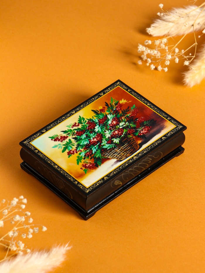 Шкатулка для украшений «Рябина в корзине», 10×14 см, лаковая миниатюра