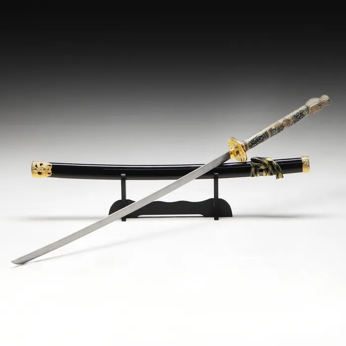 Макет оружия «Сувенирная катана на подставке», чёрные ножны с резным драконом, 100 см, рукоять МИКС