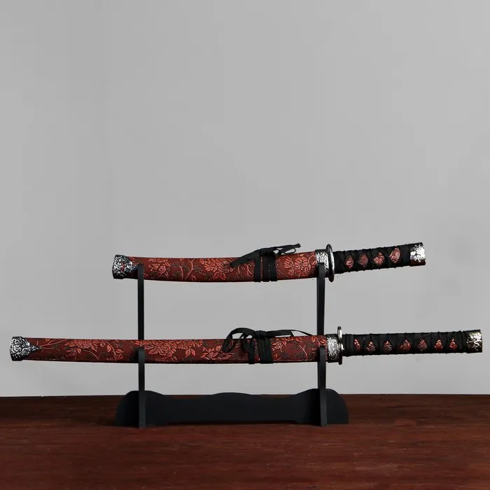 Макет оружия «Сувенирные катаны на подставке 2в1. Цветы шоко», подарочный набор, ножны кожзам, 47 см; 70 см