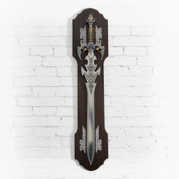 Панно на стену «Макет оружия: сувенирный меч на планшете. Дракон», декор настенный, резное лезвие, золотая рукоять
