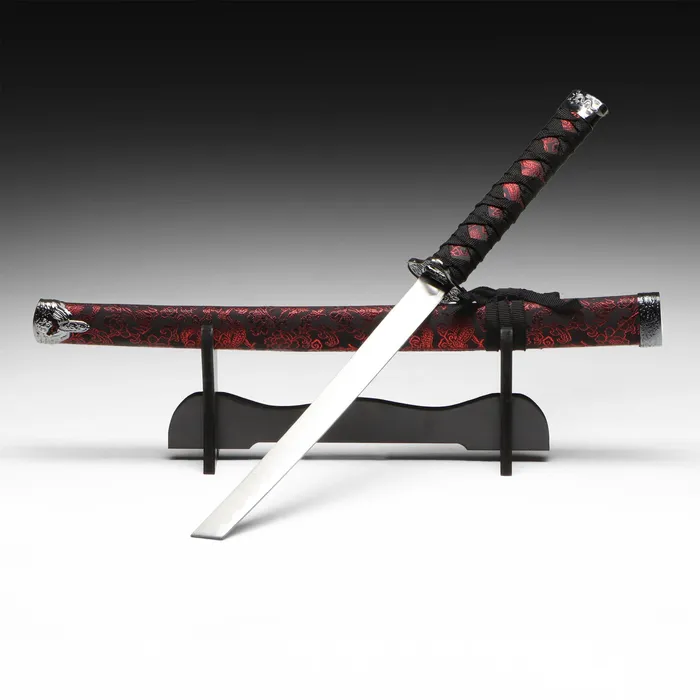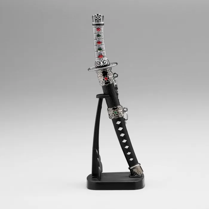 Макет оружия «Сувенирная катана на подставке», чёрные ножны с красными ромбами, 20 см