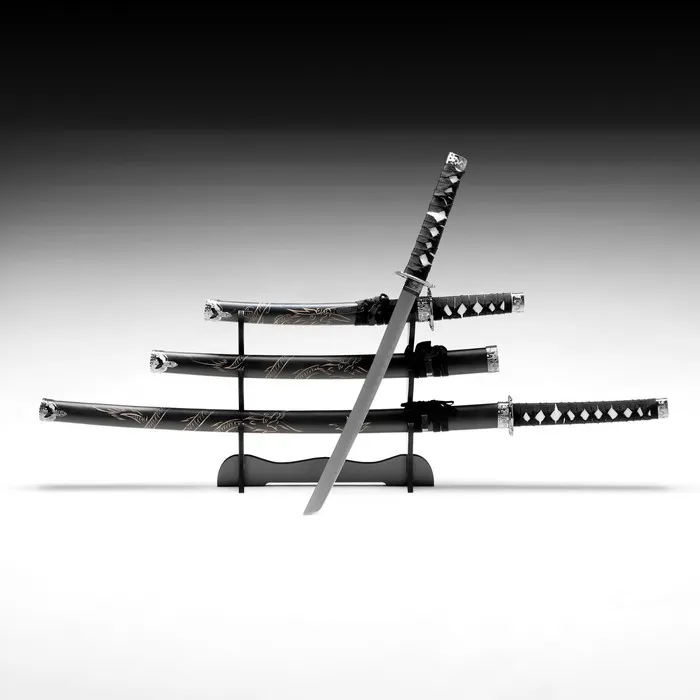 Макет оружия «Сувенирные катаны на подставке 3в1. Чёрный дракон», подарочный набор, ножны дерево, 51 см; 71 см; 100 см