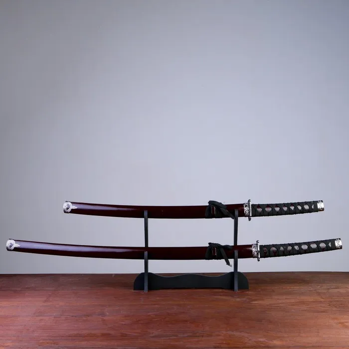Макет оружия «Сувенирные катаны на подставке 2в1. Красные глянец», подарочный набор, ножны дерево, 78 см; 99 см