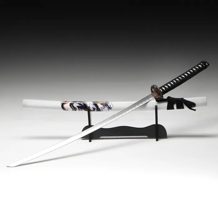 Макет оружия «Сувенирная катана на подставке. Гиу», 104 см, клинок 68 см, чёрная с белым
