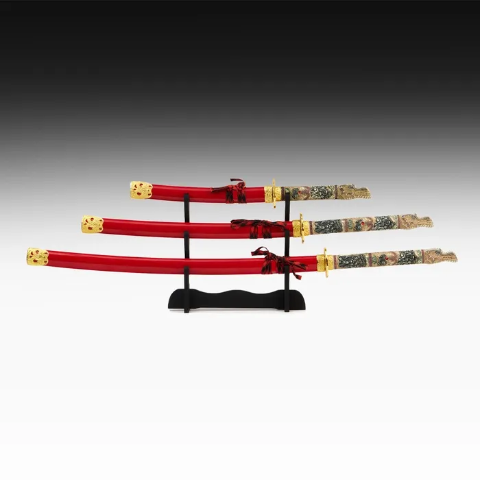 Макет оружия «Сувенирные катаны на подставке 3в1. Азия», подарочный набор, ножны дерево, 54 см; 81 см; 100 см, МИКС