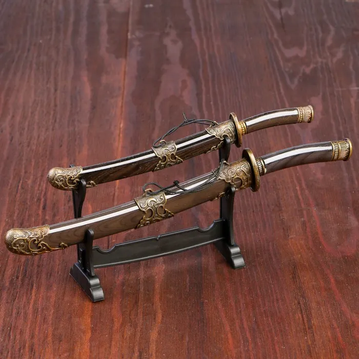 Макет оружия «Сувенирные катаны на подставке 2в1. Шоко», подарочный набор, ножны дерево, 18 см; 23.5 см