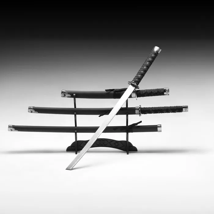 Макет оружия «Сувенирные катаны на подставке 3в1. Строгость», подарочный набор, ножны кожзам, матовая, чёрная, 47 см; 70 см; 89 см
