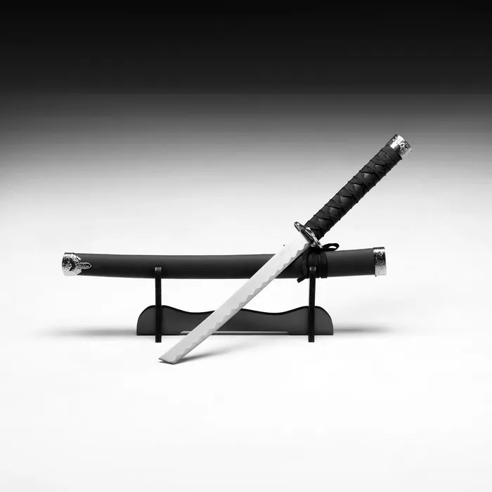 Макет оружия «Сувенирная катана на подставке», чёрные ножны, матовая, гладкая 70 см, клинок 31 см