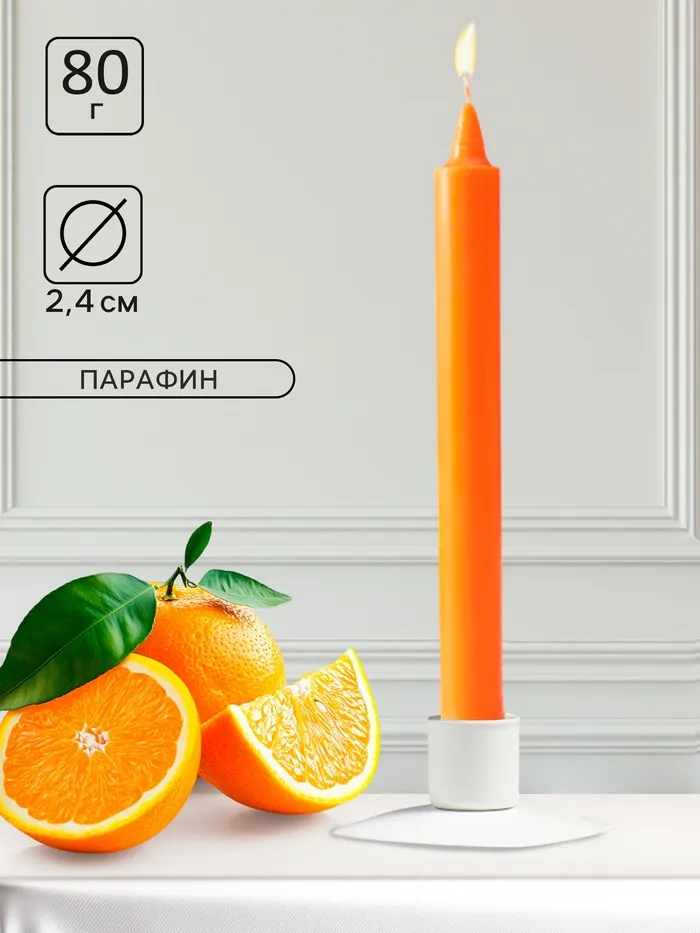 Ароматическая свеча парафиновая хозяйственная, 2.4×21 см, 80 г, апельсин