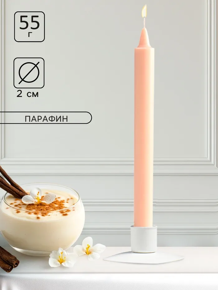 Ароматическая свеча парафиновая хозяйственная, 2×19 см, 55 г, капучино
