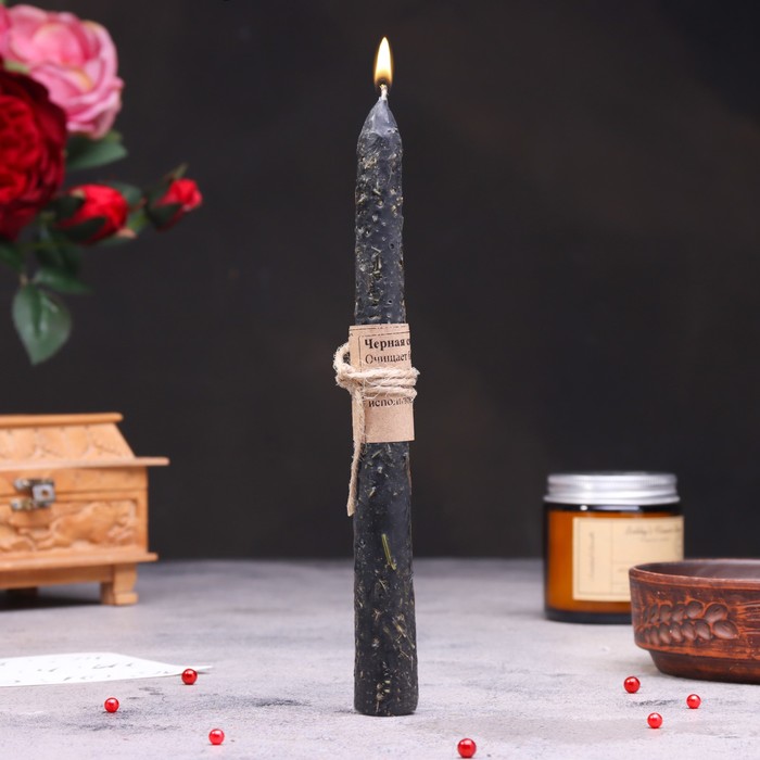 Свеча магическая «Снятие негатива», с травой, чёрная, 20 см