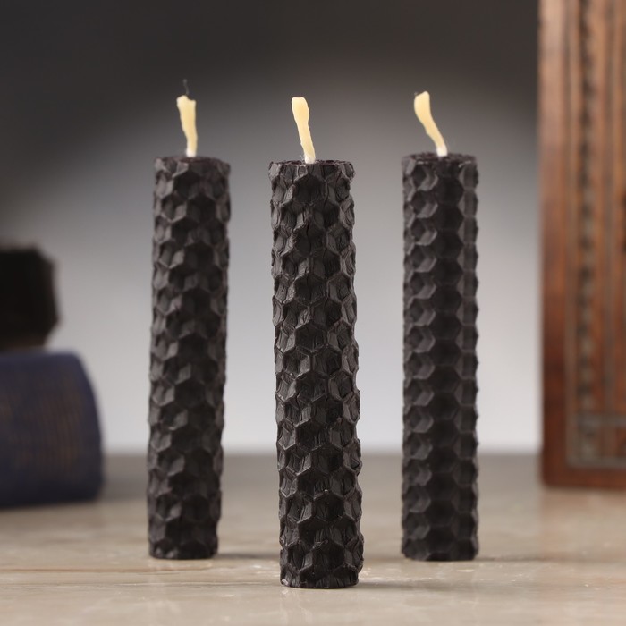 Набор свечей из вощины "Перерождение и новое начало" , 3 шт, 8х1,7 см, 45 мин, черный