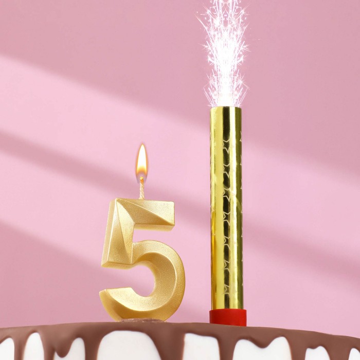 Свеча для торта цифра «Цифра 5», свеча фонтан, золотая