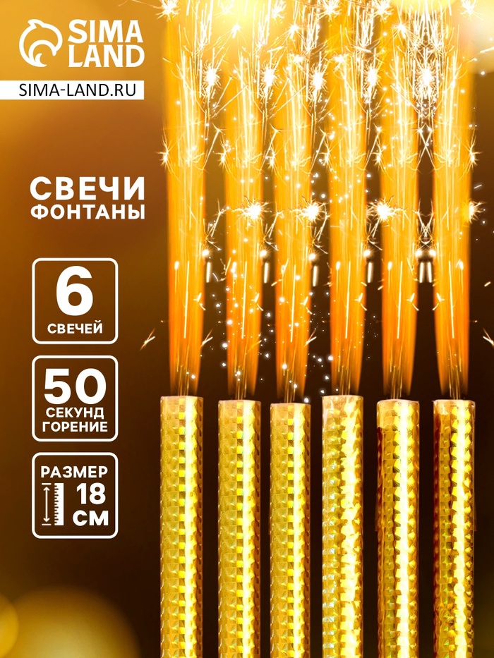 Свечи фонтаны в торт «Золото», 6 шт., 18 см, горение 50 сек